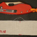 Inspired by the rasp-like grip texture of the MKM Isonzo handles (plus noticing other ‘pocket ripping knives’ over the years), a new test was born – the pocket-shredder test. Taking some raw calico and fitting and removing the knife’s pocket clip onto the calico fabric as if it were a pocket edge. This was done only 5 times; here you can see the comparison of how aggressive the pocket clip grip is. The MKM is a shredder!